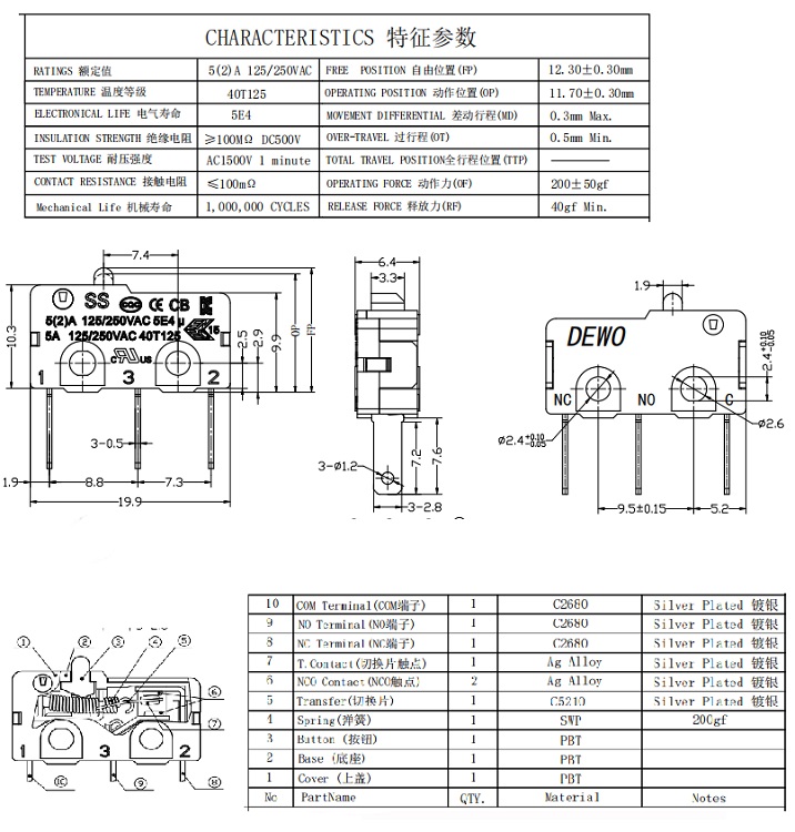 - DV micro switch