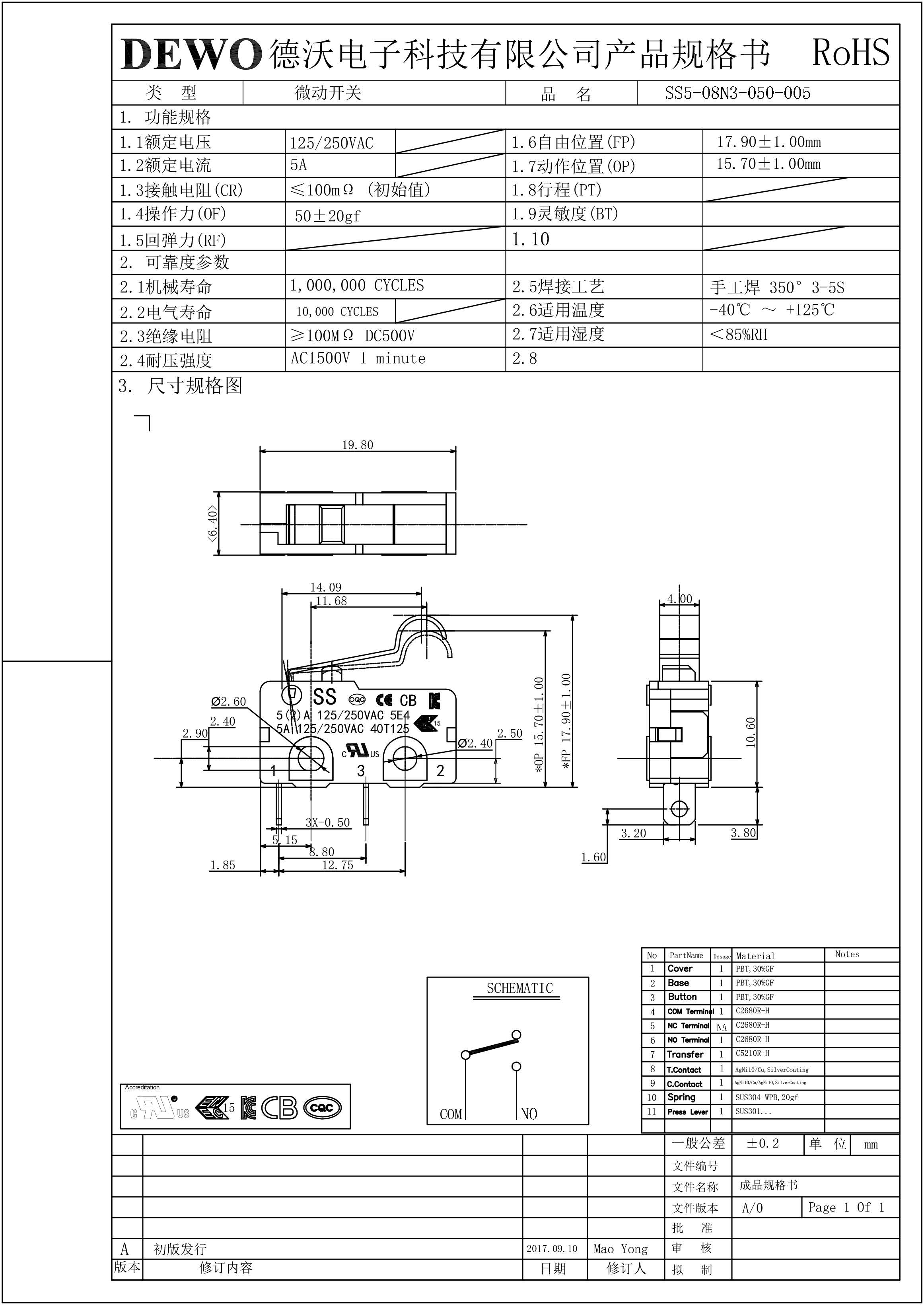 - DV型微動(dòng)開(kāi)關(guān)